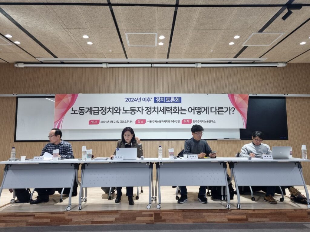 탈이념 탈계급 ‘노동자정치세력화’를 넘어서 계급적 노동정치를 향한 첫 걸음 – ‘2024년이후’ 정치토론회 “노동계급정치와 노동자정치세력화는 어떻게 다른가?” 2024년 3월 13일 /